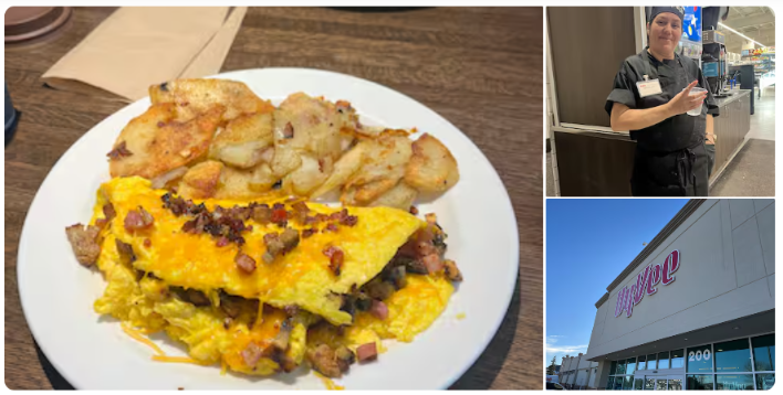 The Hy-Vee grocery store has a short-order breakfast menu at the Market Grille inside of the New Prague location that serves a fast competitive breakfast from 7:00 am to 11 am daily. The electronic boards change at 11 so if you are there later in the day it may not appear they serve breakfast. It is a no-frills option; I like the omelets. They have other food menus throughout the day as well including chicken dinners.